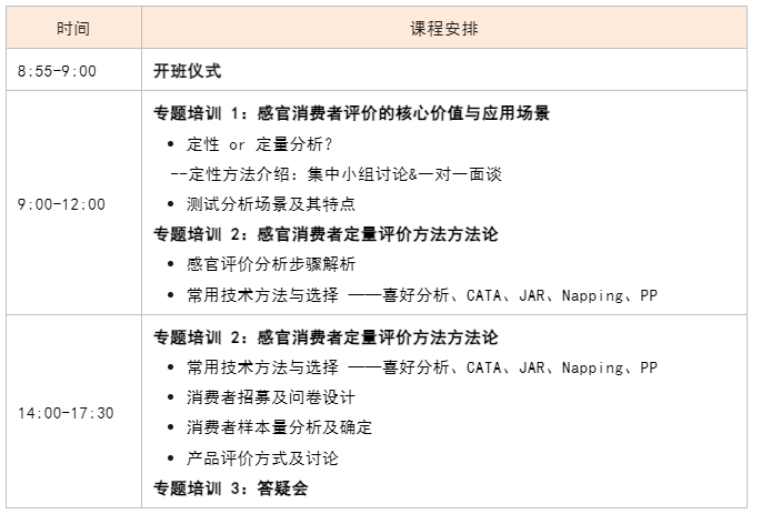適用對(duì)象:基礎(chǔ)薄弱的感官分析師、消費(fèi)者研究人員、企業(yè)研發(fā)人員、第三方檢測(cè)人員、高校老師、市場(chǎng)及公司管理者等