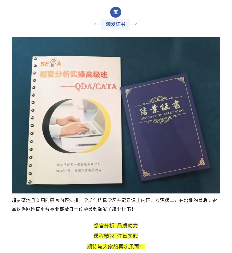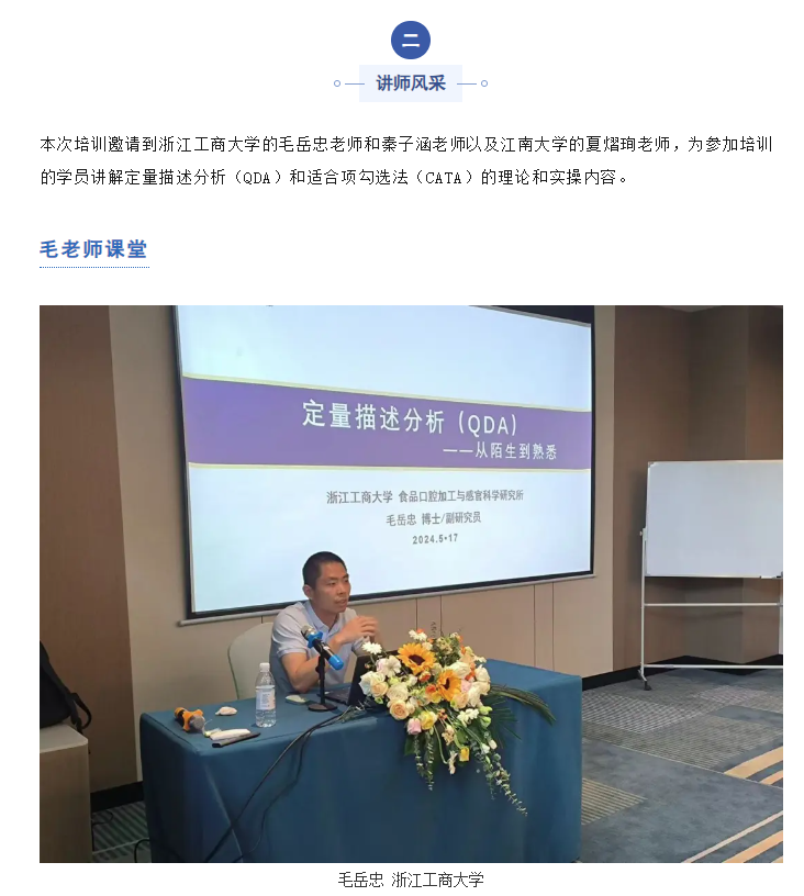 2024年5月17-18日,由食品伙伴網(wǎng)主辦的SEPA 感官分析QDA/CATA 實操培訓班在杭州萬信瑞鉑酒店圓滿結束!來自豐益、貴州習酒、雅培、伊利伊諾科技等多家企事業(yè)單位學員參加了此次培訓。