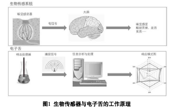味道是檢測食物安全和質(zhì)量的重要特征之一,味覺系統(tǒng)是天然生化感受系統(tǒng)中重要組成成部分之一,也是生物體適應(yīng)環(huán)境和生存發(fā)展的重要生化物質(zhì)基礎(chǔ),可以實(shí)現(xiàn)在短時間內(nèi)精確檢測和識別成千上百的不同呈味物質(zhì)。科學(xué)工作者們利用天然化學(xué)感受器的原理結(jié)合現(xiàn)代技術(shù)研發(fā)出一類仿生味覺傳感系統(tǒng),可以對呈味物質(zhì)進(jìn)行人工智能檢測和識別。