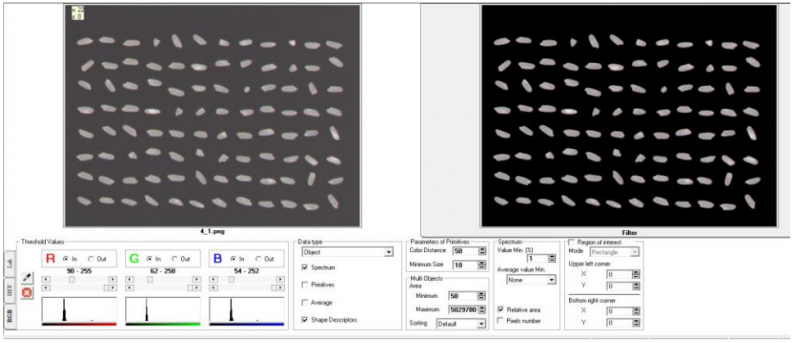 大米的視覺質量,一般是關注其白堊米的含量,以及米粒的完整度等,使用 IRIS 電子眼,可基于視覺和形狀對大米的視覺質量進行區分。