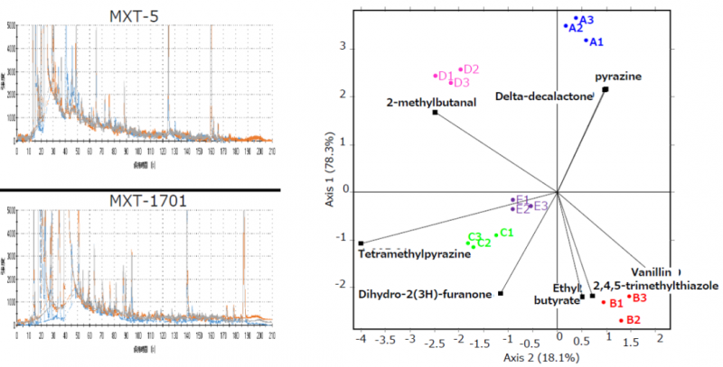 • 通過電子鼻的判別能力篩選來找出能夠解釋人工感官TDS結果的風味成分