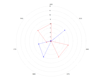 以電子舌所測的樣品相對的酸咸鮮排序數據,繪制基本的滋味雷達圖。