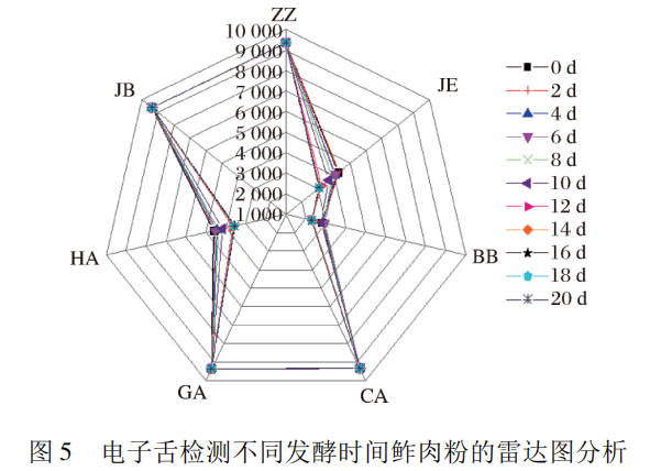 電子舌對不同發酵時間鲊肉粉的雷達圖分析
