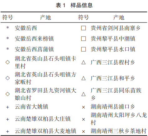 藥材樣品采集于安徽、云南、貴州、廣西、湖北、湖南等6個?。▍^)18個產地。