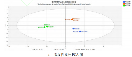 圖2 3個市售霉莧菜梗的電子鼻分析結果